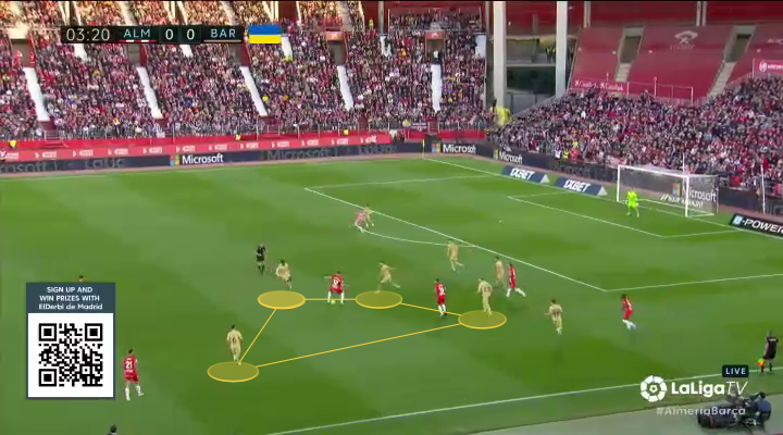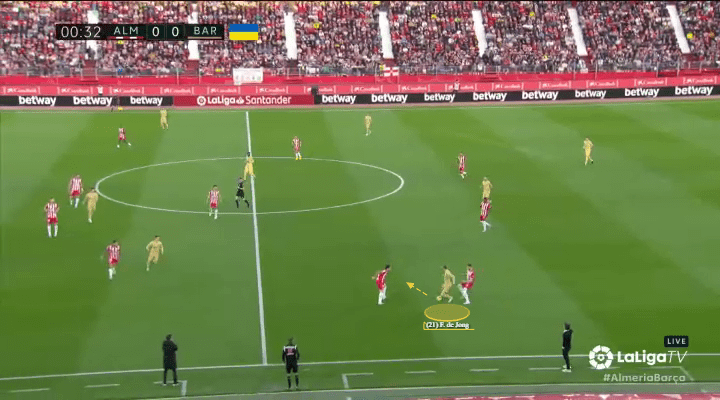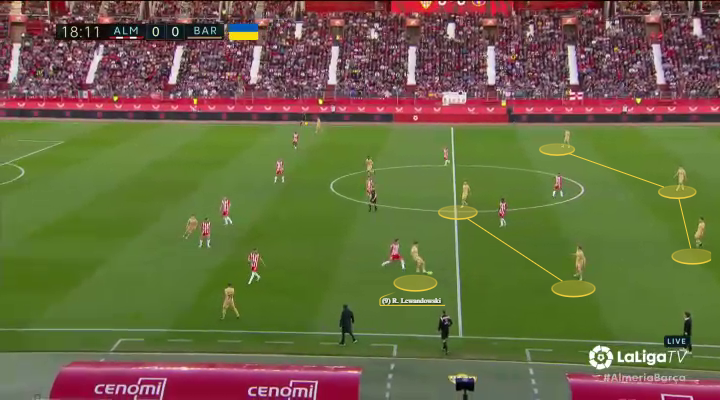 The shape in those pressing cases will typically be more of a 4-4-1-1, with Pedri shifting up into more of an attacking midfield role. Stability is pivotal in this phase, and having Busquets and de Jong in the heart of midfield means that stability is frequently provided.
