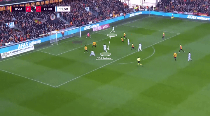 Embed from Getty ImagesFor Brugge he’s also predominantly held wing-back responsibilities in a 3-5-2 formation. However, when the Belgian club switch to a 4-3-3, Buchanan again switches into that front-line to take advantage of his electric speed and formidable 1v1 ability.