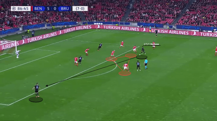 As a ’10’ or midfielder, he’s more of a ‘Midfield Maestro’, instilling the exact same attacking endeavour on the ball. Both roles encourage his phenomenal ability to break lines of pressure and advance the play, even if his end product for Brugge could improve. Even as a ‘Wing-Back’ he typically plays high and wide, and holds more attacking responsibilities than defensive ones.
