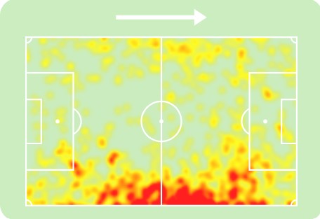 As you can see from his heatmap, that means that he most frequently fits the billing as a right-sided player and operates up and down the wing, whether that be as a wing-back or member of the front-line.