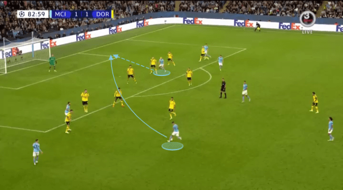 In the above example, Manchester City’s İlkay Gündoğan can see the space ahead of him within his periphery. So when he momentarily switches his attention away from the ball, he scans for his teammates, and where they are positioned in relation to the opposition. By the time he receives the pass and immediately finds himself under the pressure of Virgil Van Dijk, he’s able to quickly process that pressure to know exactly where he wants to play his pass.
