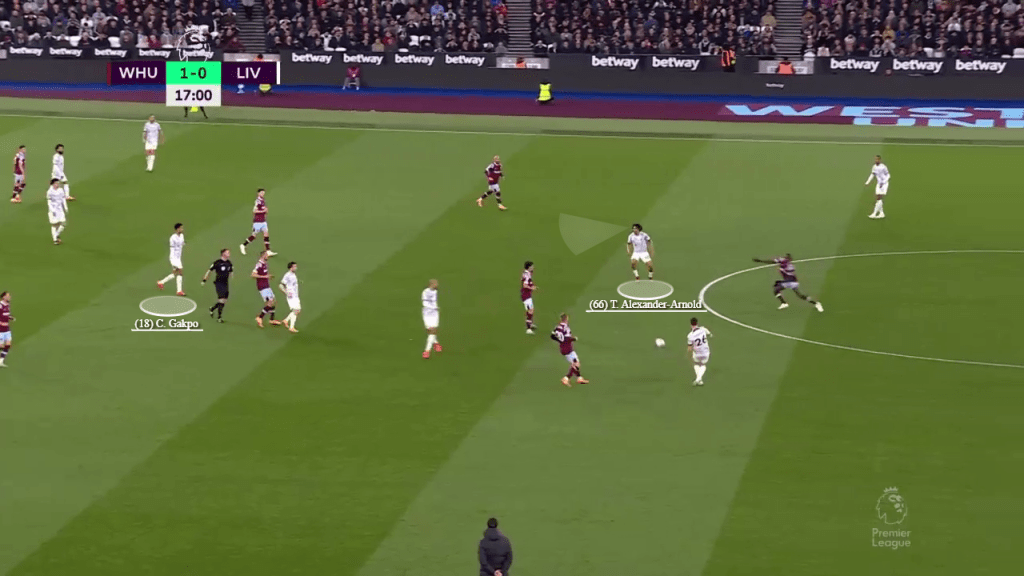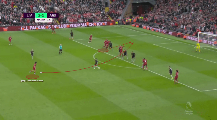 In many of those matches, it was almost like there was a line on the field that Trent could not cross. But now with the proper rest-defense in place and Alexander-Arnold himself playing more of a pivotal role again, he’s back in these kinds of areas to assist chances.