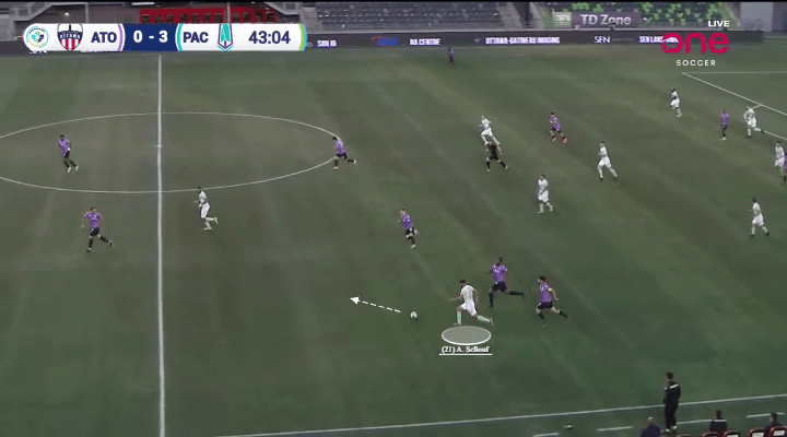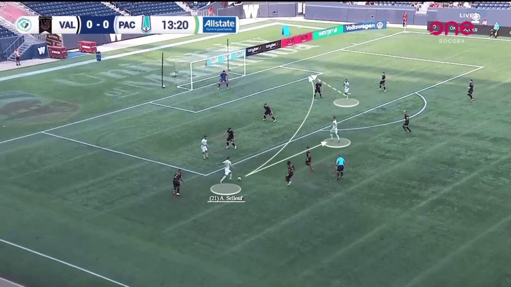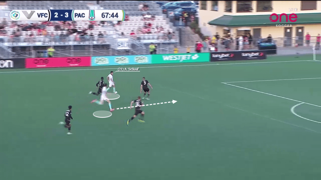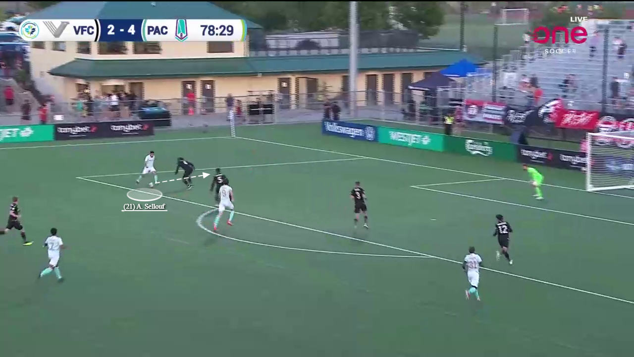 On the one hand, that’s a great statistic that illustrates just how potent he’s been for Pacific. On the other hand, it also demonstrates Sellouf’s desire to go all on his own. The 21-year-old wants the ball at his feet, and is most dangerous when having the ability to drive at the opposition.