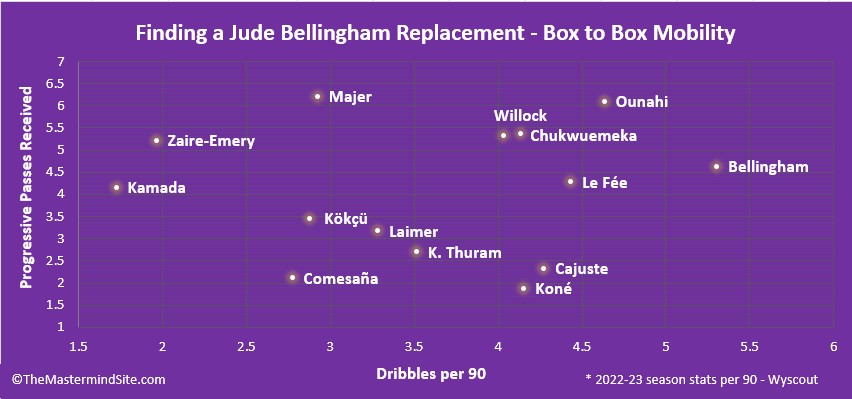 Embed from Getty ImagesIn replacing Jude Bellingham, we want to find a player who can venture up and down the pitch through not only impeccable mobility, but also a keen awareness of space.