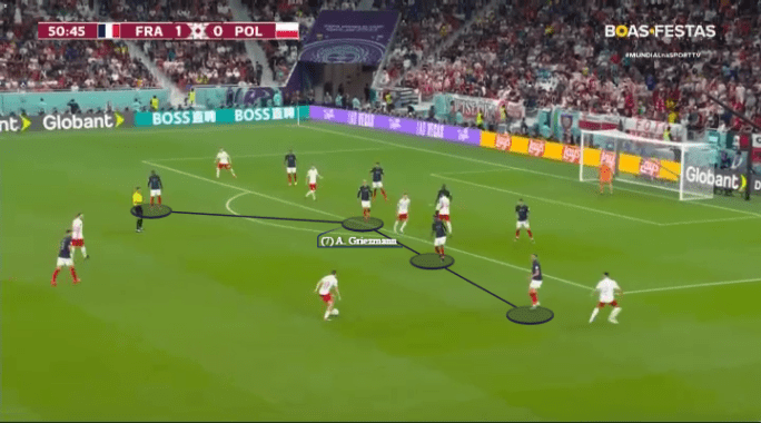 Embed from Getty ImagesAtletico Madrid’s style of play has primarily revolved around quick attacking transitions, to which Antoine Griezmann has always flourished. France have adopted a similar approach with their use of the 32-year-old and Kylian Mbappé as co-conspirators in leading the charge. This is where Griezmann’s speed of play always shines, where he can quicky adjust to make the best decision in the moment.
