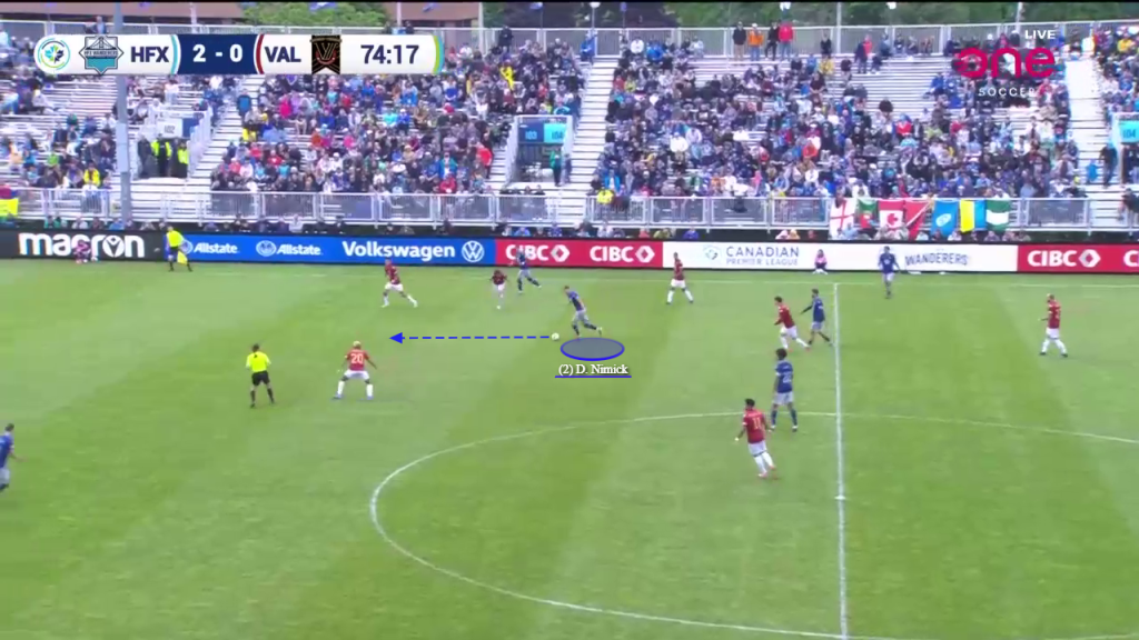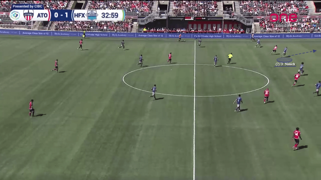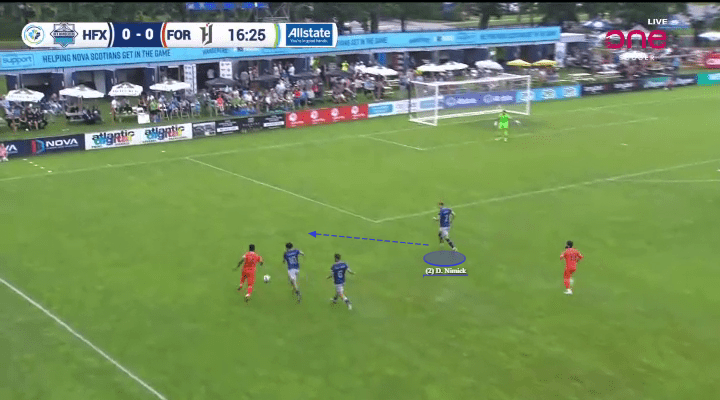 Nimick’s completed 81% of his forward passes this season, alongside 65% of his long passes according to SofaScore, which has him ranked 4th among defenders in the league. All part of that role on the right side of Halifax’s back-three, Nimick makes himself an important progressor both through his precision passing and his willingness to carry the ball up the field.