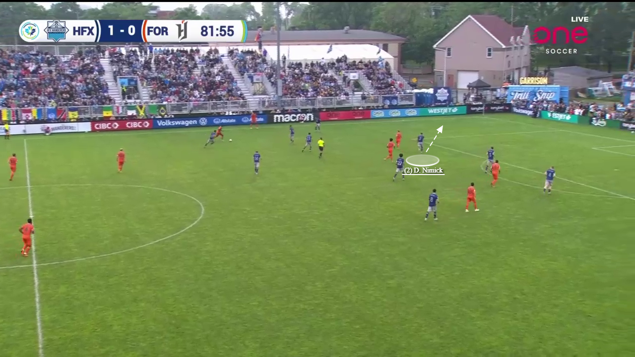 Perhaps most encouragingly of all, Nimick has quite the technique when striking a switch of play from one side of the field to the other. He pulled off a number of fantastic switches in the team’s latest encounter against Forge FC, even securing himself a stunning assist that had Rezart Rama gasping for air.