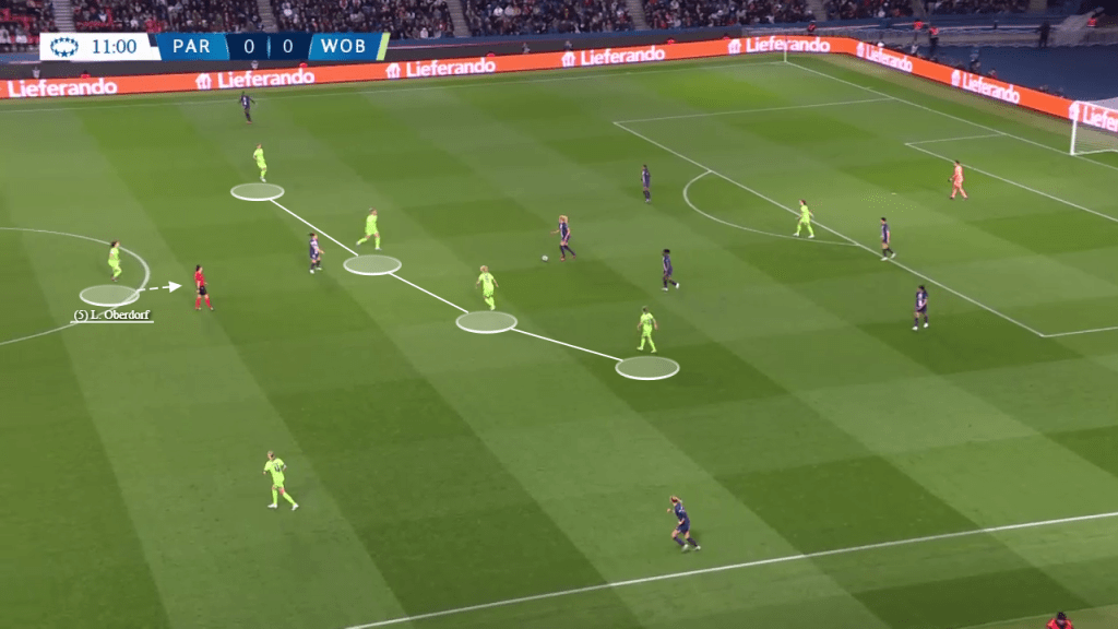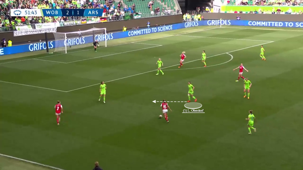 We can expect the German to operate in a similar fashion to how she operates for Wolfsburg, as the lone-pivot required to step up anytime the first lines of pressure become broken.
