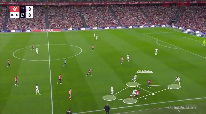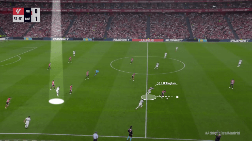 Ancelotti’s team were far and away the better side in their opener against Athletic Bilbao, playing a 4-4-2 diamond with Jude Bellingham at the tip of the shape. Here is what the Englishman offers in the role, and why it could be a great position for him this season.