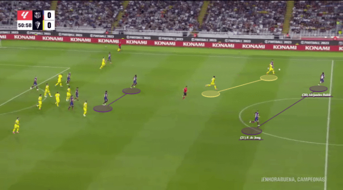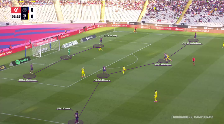 This proved to be an issue for La Blaugrana in transition, particularly after their set-pieces. They played with just Frenkie de Jong and Alejandro Balde holding down the gauntlet, completely exposing themselves to fast-breaks.