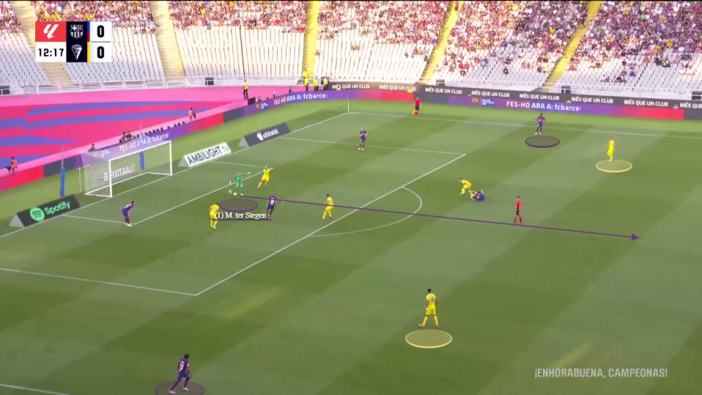 The distance between the low slotting of Gündoğan + Romeu and the higher positions of Pedri and Gavi would allow them the space to do this, and ter Stegen is one of the best keepers around in playing these passes out from the back.