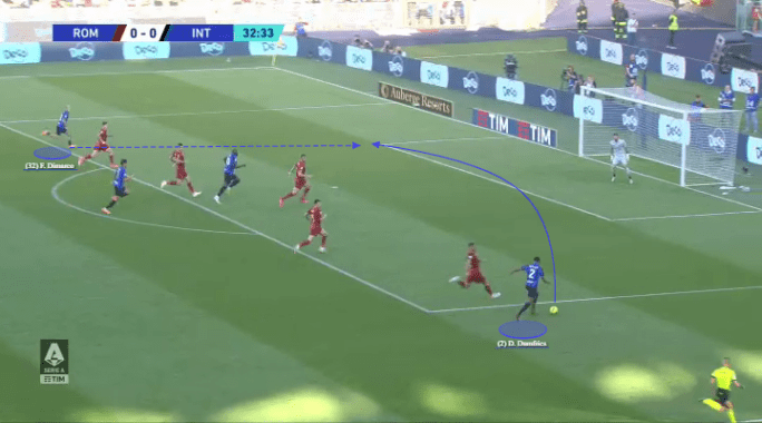 As this becomes more common, we’re likely only going to see more centre-backs in the ‘Inverted Fullback’ role, since it’s essentially a third centre-back. But then what about the other side? Wouldn’t Ibrahima Konaté be the same player role given that he’s also an outside centre-back in possession? No. He becomes a centre-back out of possession. This player tends to be the more ‘physical’ of centre-backs, but one that also stands out for what they offer on the ball, and thus pushes higher or wider than the sweeper in the side. But they are not a full-back within their stating position and are not part of this classification! Not like Achraf Hakimi!