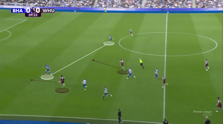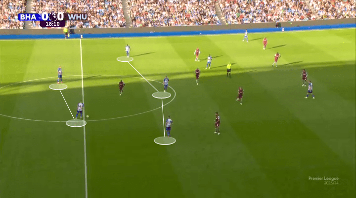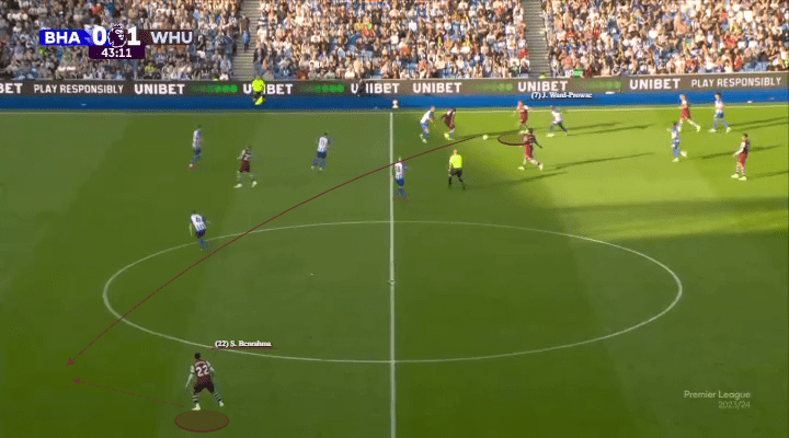 They no longer have problems in front of goal. It’s that 2+3 shape that’s leaving too much space out wide. West Ham were always going to win this match with their approach to counter-attacking in the wide areas as a result, and the Seagulls should have seen this coming. As for James Ward-Prowse, this is underratedly one of the signings of the summer, and one that perfectly fits their style of play.
