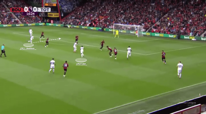 His technique might not be as sublime as James Maddison (high bar to clear), but what separates the Spurs man from others in the ’10’ role is that ability to perceive spaces to receive completely unopposed.
