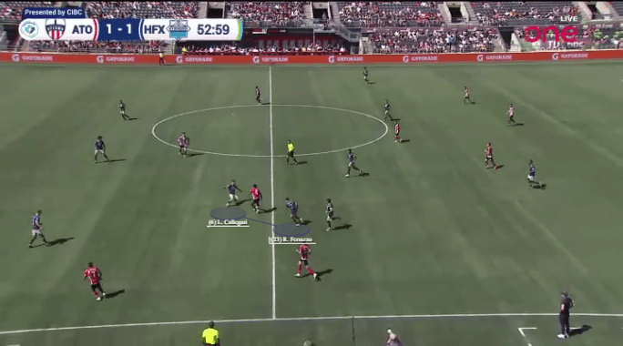 From a player profiling perspective, the point is that context clues can help to understand which all-rounders are meant to be more defensive in their role, and which players are meant to be more possession-oriented within that #6 slot. HFX’s Lorenzo Callegari loves a tackle just as much as he loves a long pass. He’s equally intelligent at both sides of the game. But he sits next to the last ‘Anchor’ on earth in Mohamed Omar. Omar operates in a reserved position, and makes the simple passes rather than the line-splitting ones that you see from Callegari. That’s why we have Callegari in the ‘DLP’ role for HFX, with a secondary player type behind his name too – ‘Midfield Destroyer’.