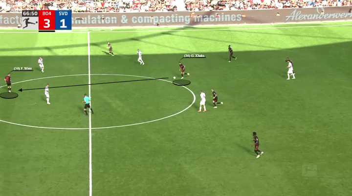 Xhaka and Wirtz are both exceptional forward passers of the ball, and so they can easily unlock the entire defense when given the opportunity.
