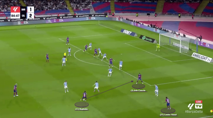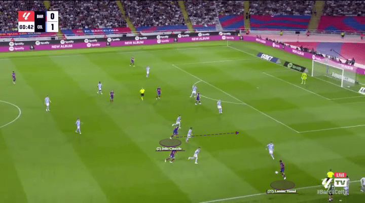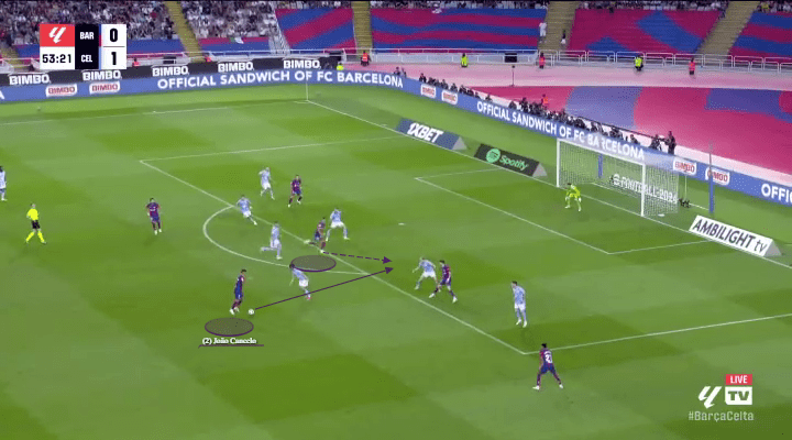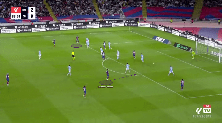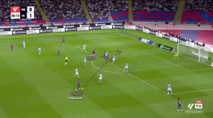 Embed from Getty ImagesAgainst Celta Vigo, Joao Cancelo created his best moments from the right half-spaces, rather than the wide areas. This might not have happened if Ferran Torres stayed on the pitch as the team’s right-sided attacker. But with the young Lamine Yamal entering the fold in the second half, Barcelona now had a more natural wide man to hold the width, freeing Cancelo up to roam into the half-spaces.