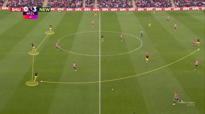 Embed from Getty ImagesKieran Trippier has long been one of Newcastle’s top creators and most influential players in the attacking third. Yet within Newcastle’s scheme, he’s often holding quite a reserved role down that right-hand-side. This often allows Newcastle more opportunities to facilitate long passes out from the back.