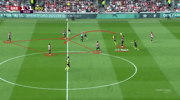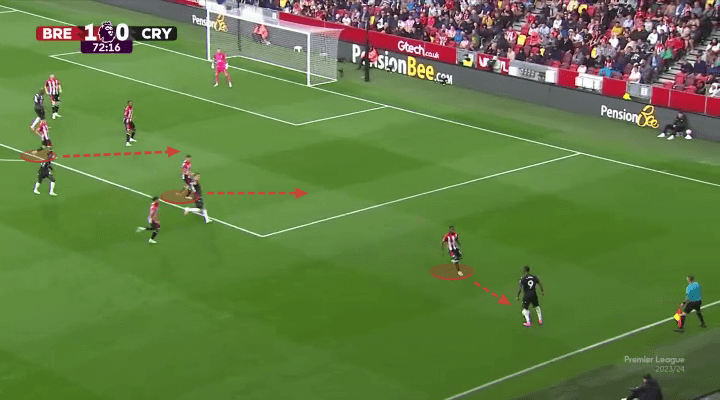 Their flexibility should still be commended, a team that is always adapting to the conditions of the game. That’s not to say Frank won’t try to suit the individual strengths within the team. For example, the more confident ball carriers like Mbeumo, Wissa, Henry and Schade have license to showcase their necessary dribbling abilities.