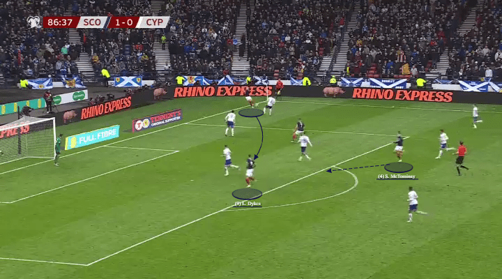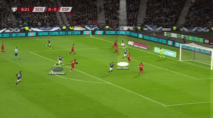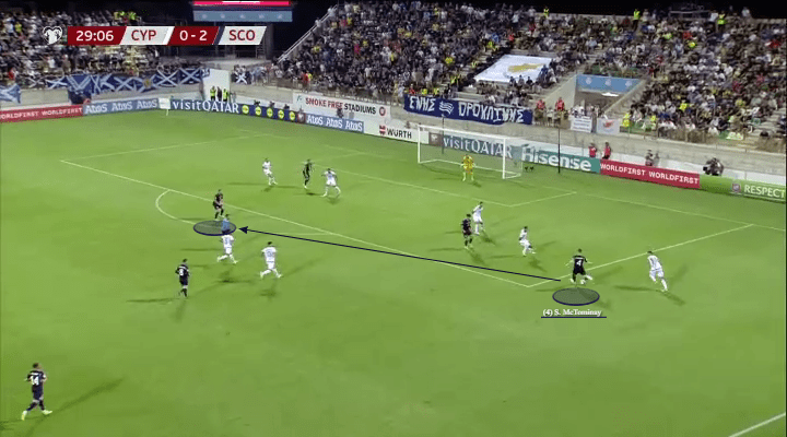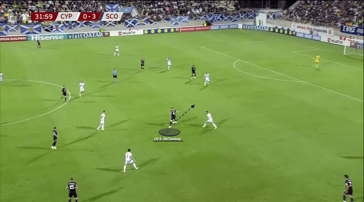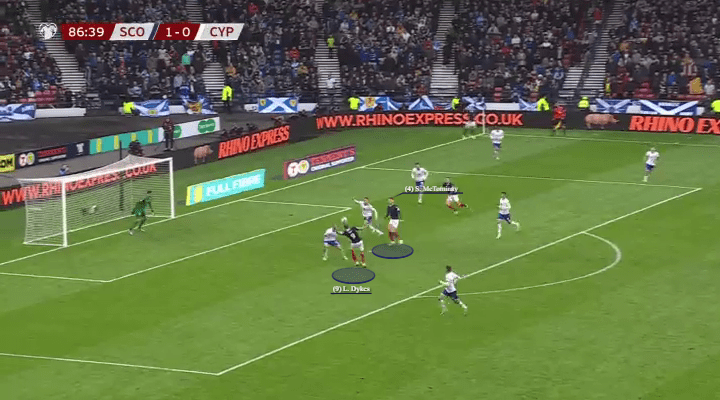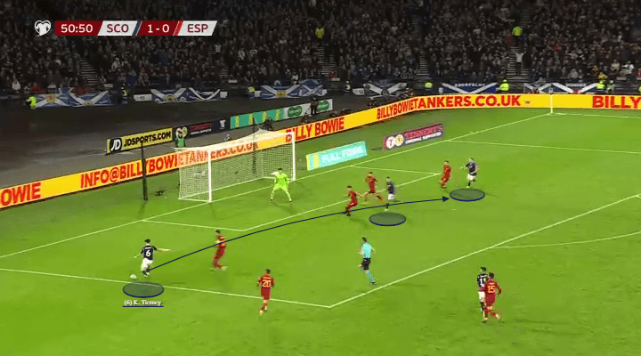 We’re starting to see that increased tactical understanding translate over to other aspects of his game, such as in his first touch. He possesses an excellent awareness of how and when to push the ball past defenders, and has turned several players inside-out in a Scotland shirt this year.