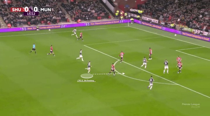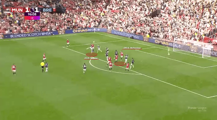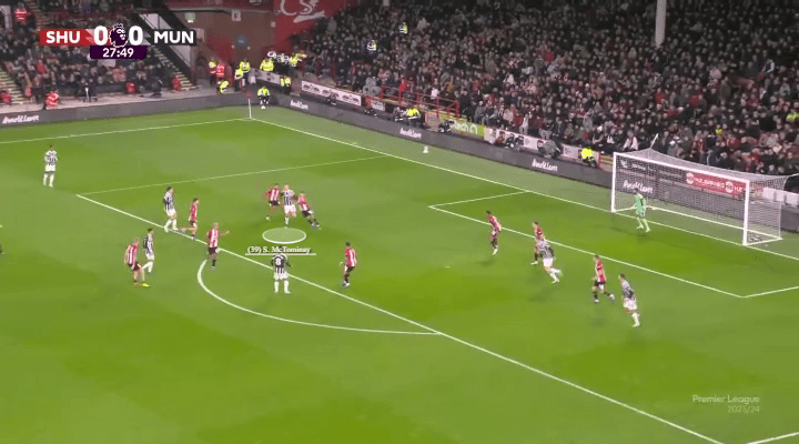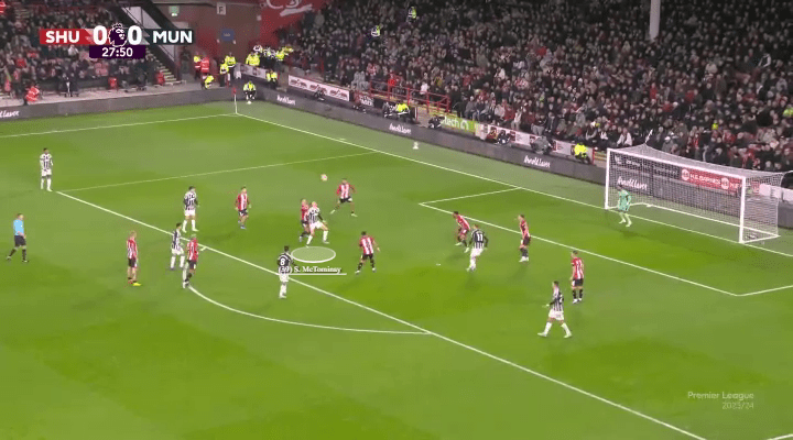 This is where positioning a 6’4 threat like McTominay inside the penalty area can be so valuable. But coming from central midfield, much of his goals come from late arriving runs, where he can go a bit unnoticed.