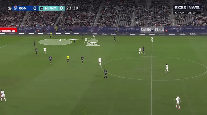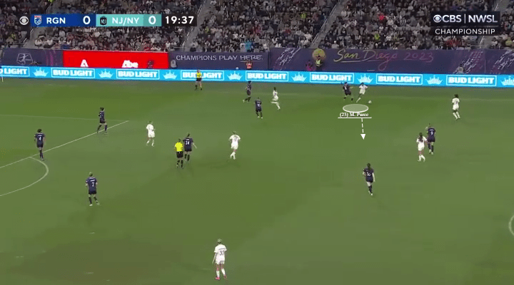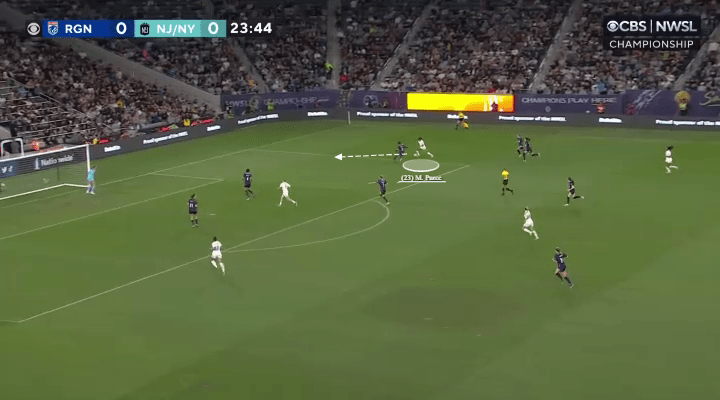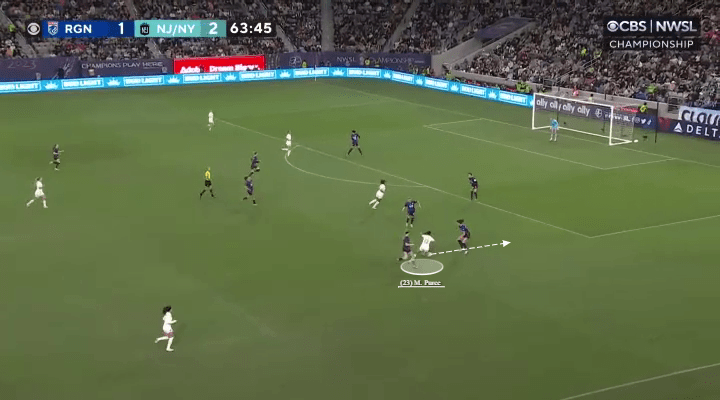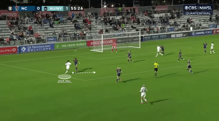She read the moment and the space to knock the ball into, and used her speed to out-sprint the defender to the ball. Faced with the final defender, Purce brought on ‘La Pausa‘ and then injected a quick acceleration of pace to take the defender on down the line and beat them before the killer pass. It was a game-winning masterclass from the Gotham winger, and a day Midge Purce will likely never forget.