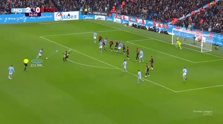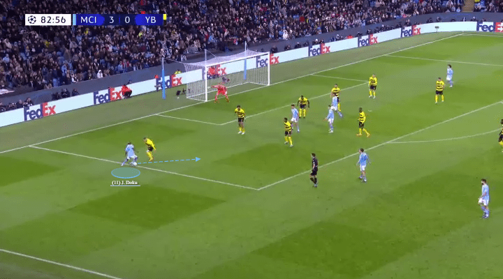 This can be a detriment. He needs to be careful not to do everything on his own, and not turn back into trouble after already beating his man. But so far in his Man City career, Doku has been exceptional at reading the spaces to know which way to turn. Sometimes it seems as though he’s just toying with the defender. But more often, he’ll take it onto his left foot when there is the most amount of space available to take the ball in that direction.