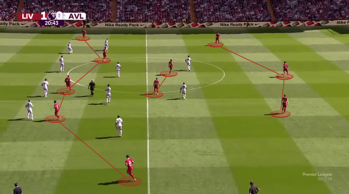 Looking at the theory of “chaos” in football as the teams that often excel on the break, the “control” teams sometimes limit themselves in one way or another when it comes to transitional moments. Brighton needed time this season to truly put together a better rest-defense under De Zerbi, and while teams like Xabi’s Leverkusen or Pep’s City often score goals on the break, it’s never a top priority. In fact, as the theory goes, Pep Guardiola believes that you actually have to make a certain number of passes in certain phases of play to unbalance the opposition. For Liverpool under Klopp, the ‘first pass forward’ principle is integral. They look for the first pass forward, opting to play progressive passes quickly through the thirds. Guardiola might opt more so for an approach where gaps are exposed more meticulously and patiently.