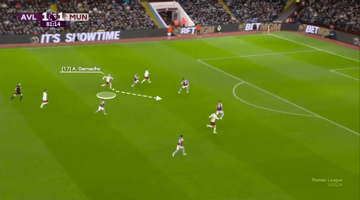Dalot does so brilliantly, finding Fernandes at the back-post. But it’s all about Garnacho’s brilliant first-touch, and the way he shifts the defender. It should be obvious to everyone that Garnacho’s going to play the pass to Dalot. But still you don’t expect it. You know how dangerous the Argentine can be on the dribble. You know he loves to go on his own. So you’re half-expecting him to do exactly that. He’s more unselfish than you think.