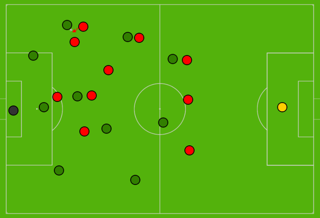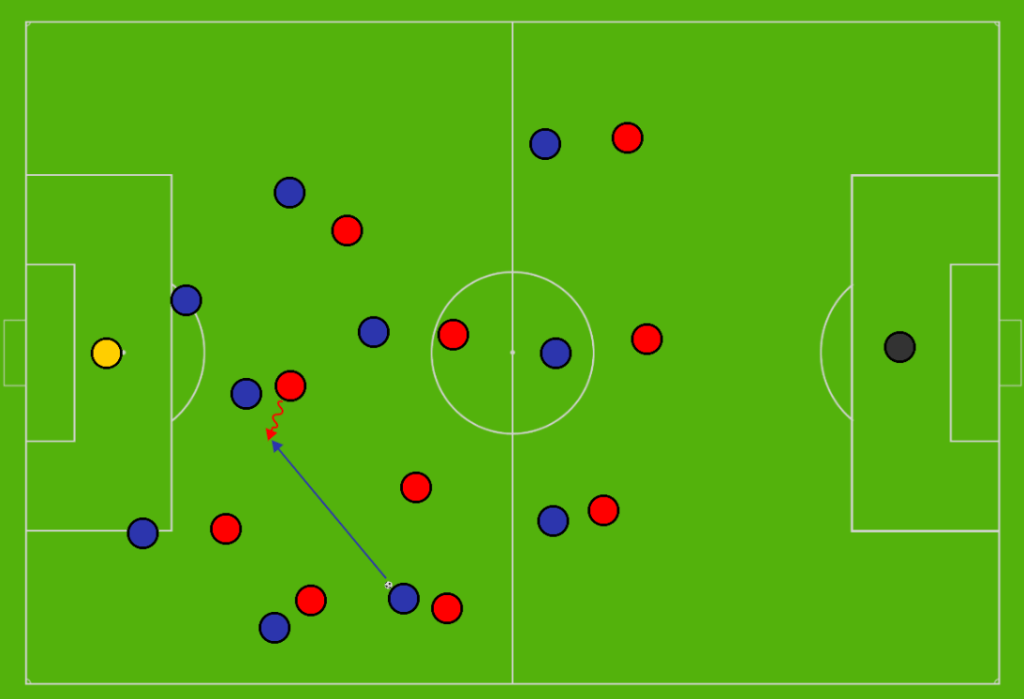 That is, with intensity and togetherness. As Sal’s Theorem outlines, it’s one thing to have the intensity. It’s one thing to have one or two players intensely engaging in the press. It’s another to have everyone go together. If that happens, winning the ball back becomes inevitable.