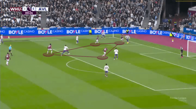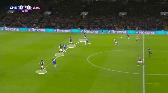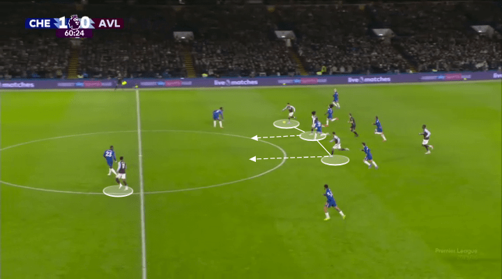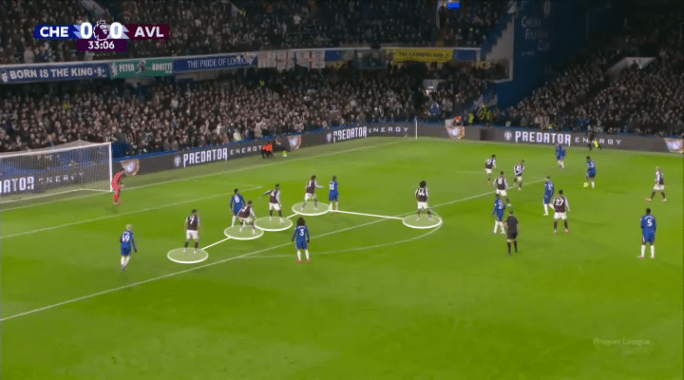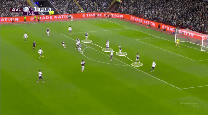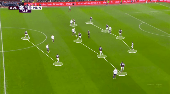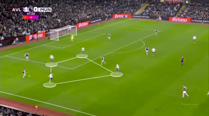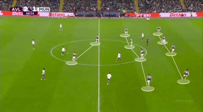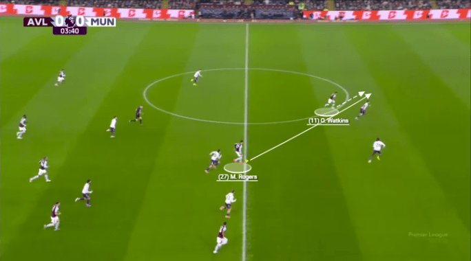 If they can win the ball in their mid to high block within this shape, they are then well set-up to find Ollie Watkins or a player like Morgan Rogers on the break as immediate outlets.