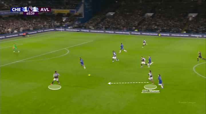 The full-backs will occasionally gallop forward one at a time, especially with Kamara and Onana holding so steadily in the midfield. Ian Maatsen loves to make advancing runs through the half-spaces on the inside of Morgan Rogers, as the England international cuts inside onto his right foot.