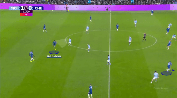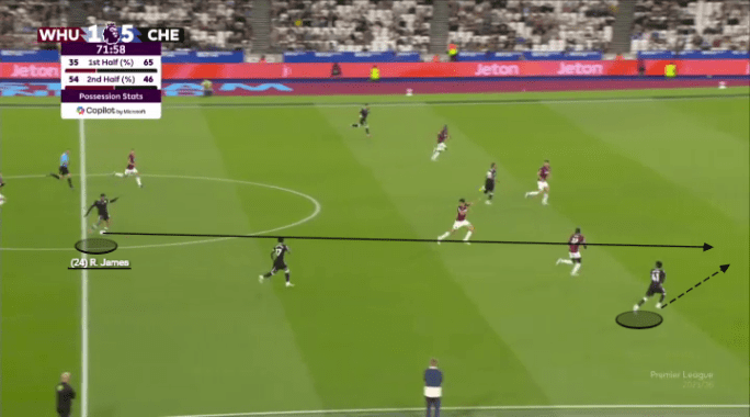 This is pretty key to the way that Chelsea attack down the wing. They like to switch play early and often, and then get their wingers to go 1v1 at the opposition defense. This is how Pedro Neto likes to make his impact, and it’s often how Alejandro Garnacho can get himself into games and start to threaten. They need to be able to isolate opposition full-backs, which often requires a quick switch of play from one side to the other.