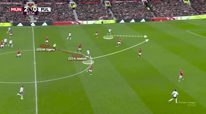 Kobbie Mainoo’s not meant to be that anchoring holder. He’s meant to get forward, play neat and tidy passes, and run box to box. So without Ugarte properly anchoring in that Casemiro slot, the centre of the pitch became a gaping black hole as the dying stages of the match came to a close.