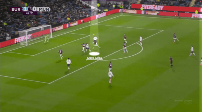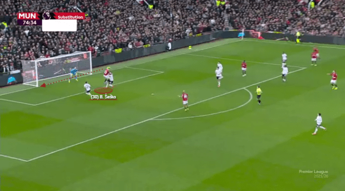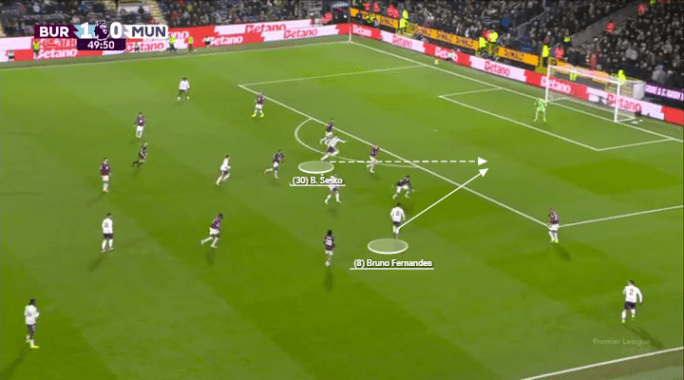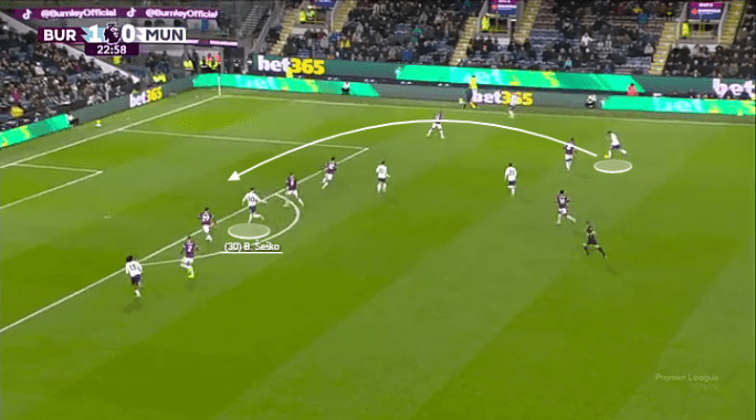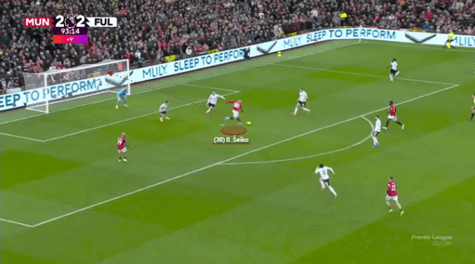 Both of the goals in his brace against Burnley came through his dynamic movement and powerful sprinting in behind. The first came through that telepathic understanding with Bruno Fernandes, where he saw a pocket of space, sprinted into it, received, and slotted it home.