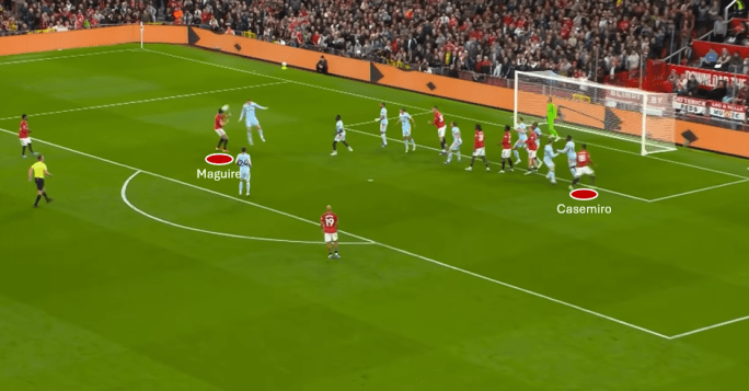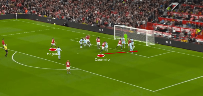 By the time Maguire makes contact, Casemiro’s already found his scoring position.