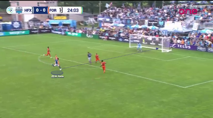 * Ferrin profiles as being capable of both the INV Wing & Direct Wing roles. Context clues point to him being the more direct winger for HFX, but he’d likely be best as an INV Winger for a different team. His secondary role has to be credited as a ‘Creative Link’, where he spent the bulk of his time this season playing as a ‘9’.
